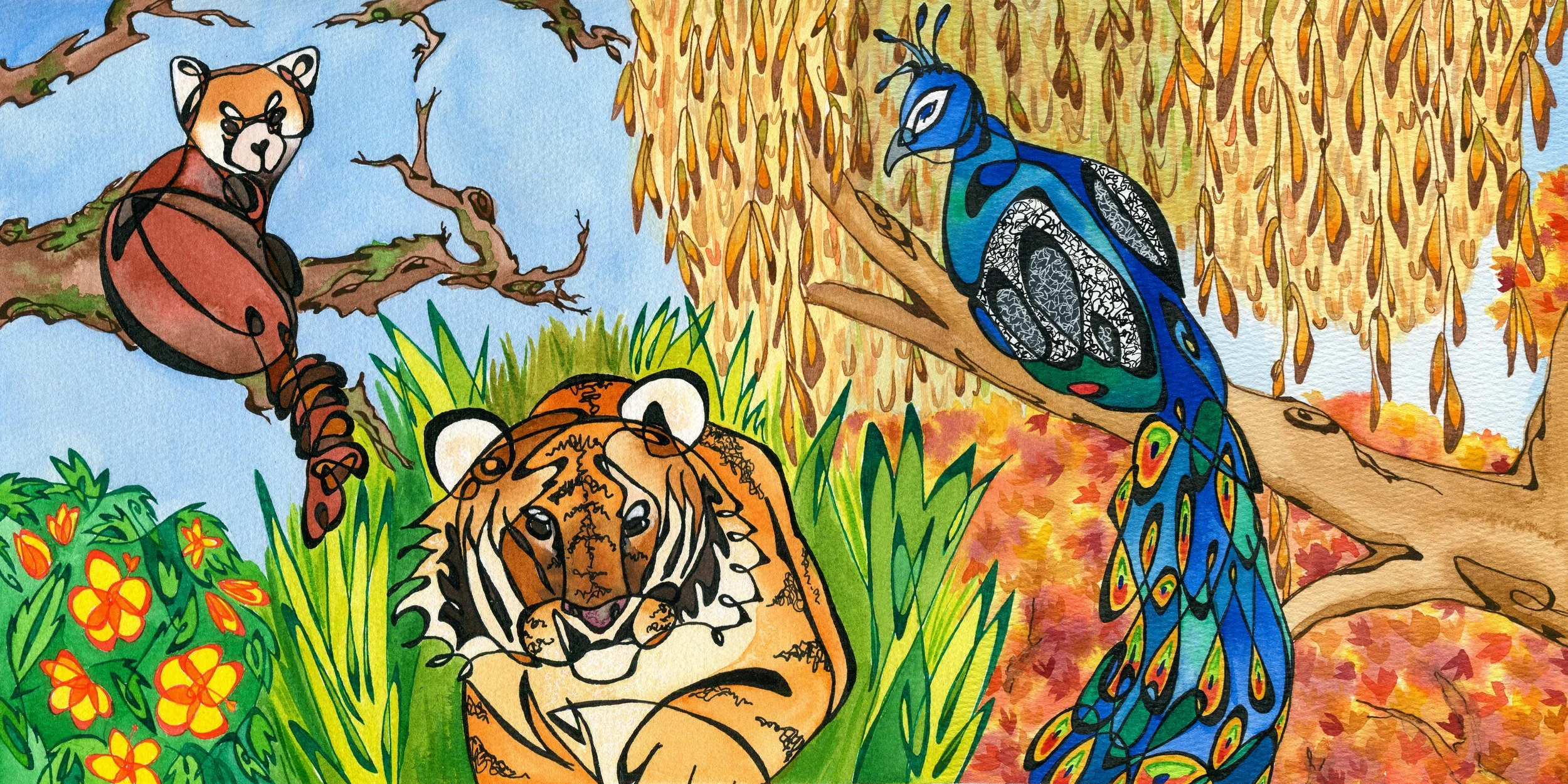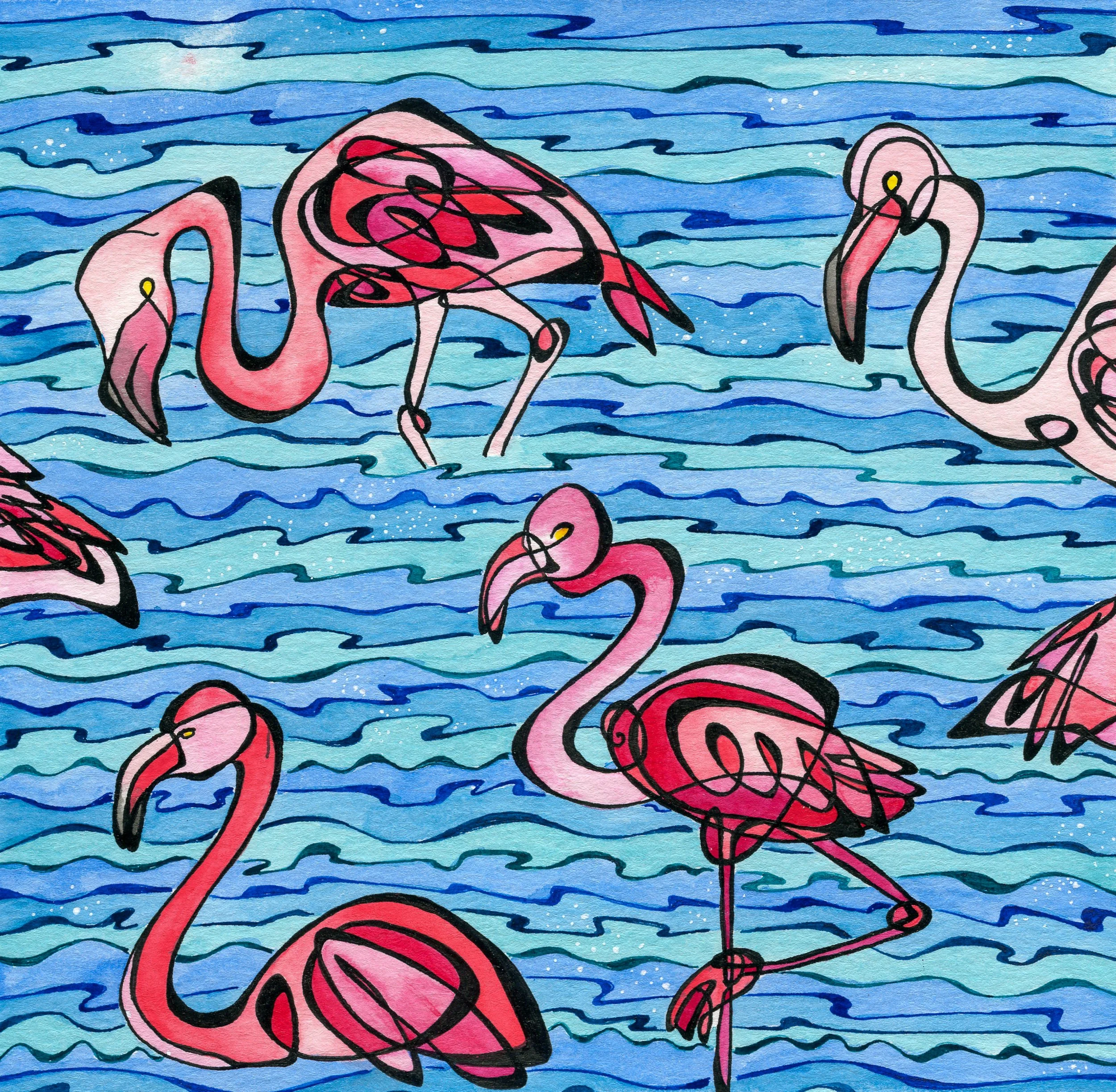 The line art for each piece is done with a glass pen that is dipped in india ink. India ink is alcohol based and once dry, cannot be reactivated with water. It gives the look and style of watercolor with added vibrancy and pigment.